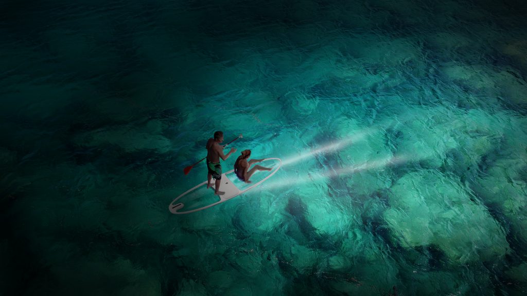 ”But what does it matter for the mostly dark and gloomy Scandinavian waters?” you might ask yourself. Well, Loeva has also equipped the board with two rows of ultra-white LED lights, that you can charge up via the built-in battery. The lights can let you see for as far as 15 metres ahead.