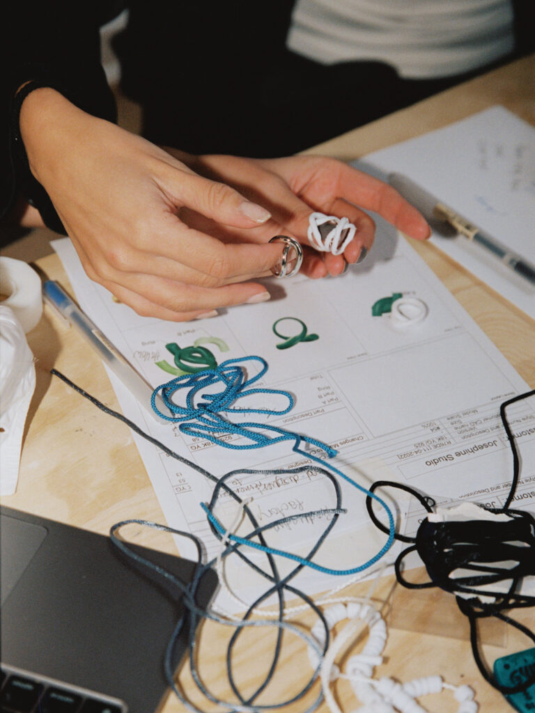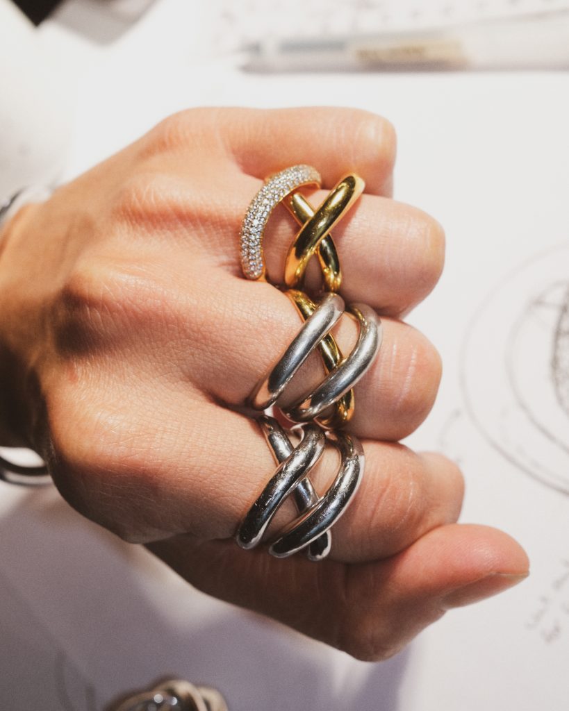 Oslo-based contemporary fine jewellery label Josephine uses solid materials — sterling silver and solid gold, avoiding any form of gold plating. The brand, Sarah Herland says, also emphasises comfort as a cornerstone of its design philosophy. Together with her co-founder, Camilla Johnsen (pictured left above, next to Sarah), she also works extensively with 3D printing as a part of the design process.